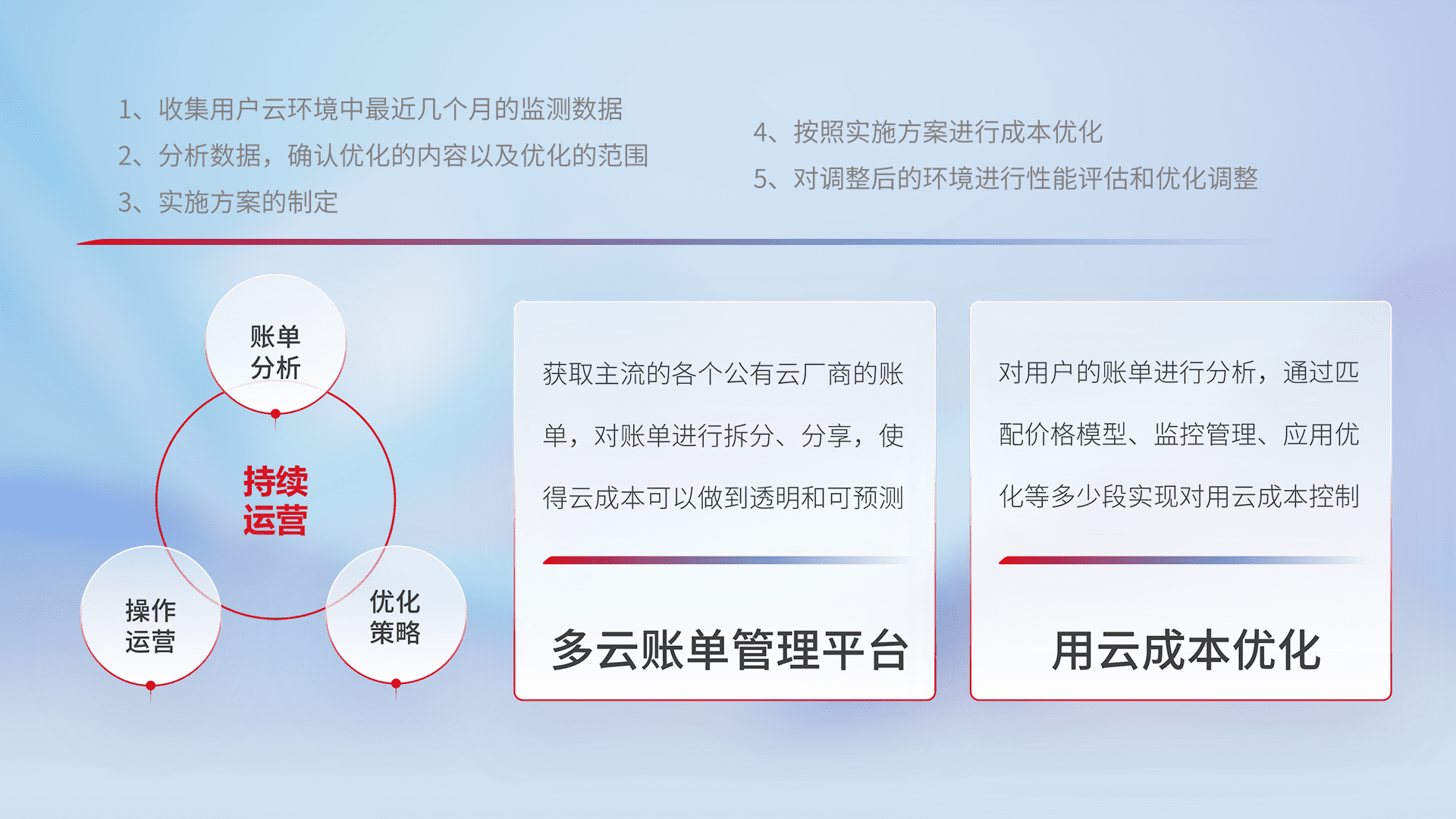 运用智能化工具分析云资源,,,,提供日常费用可视化工具,,,,自动账单拆分,,成本优化云上费用,,,,降本增效。。。